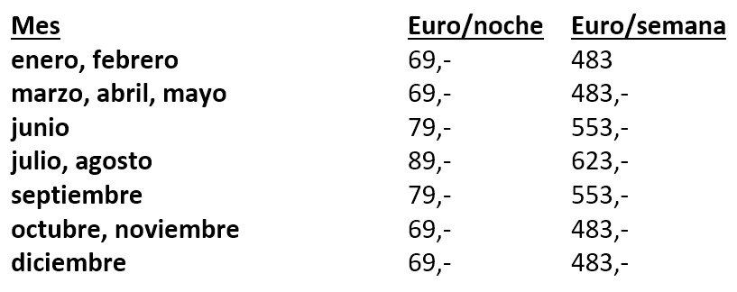 Además, hay una tarifa única de 100 euros por limpieza final, ropa de cama y toallas.